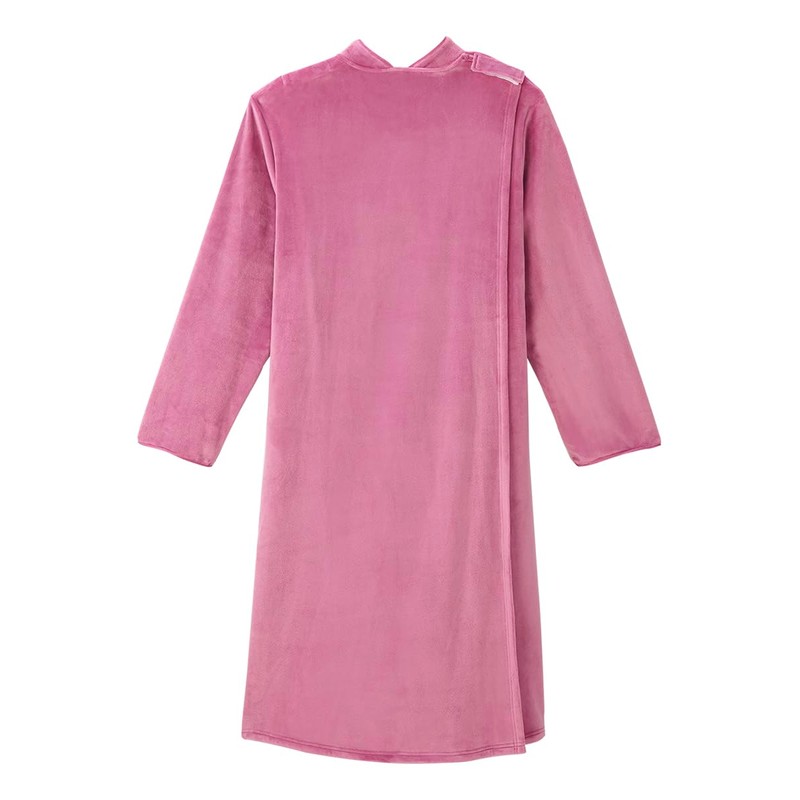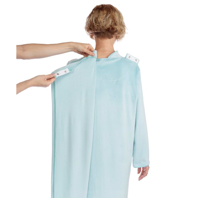 - ADAPTIVE FIT: This adaptive clothing for women is perfect as elderly women clothing for anyone suffering from decreased movement, especially those suffering from weakness in the upper arms. By providing hospital gowns with snaps on shoulders, our women’s sleepwear avoids pressure points. It’s a dress with open back features in order to provide warm nightgowns for women who want extreme comfort and discretion. The soft plush fabric allows for total relaxation.