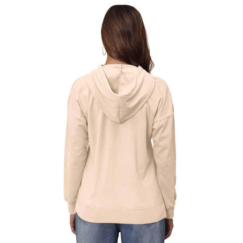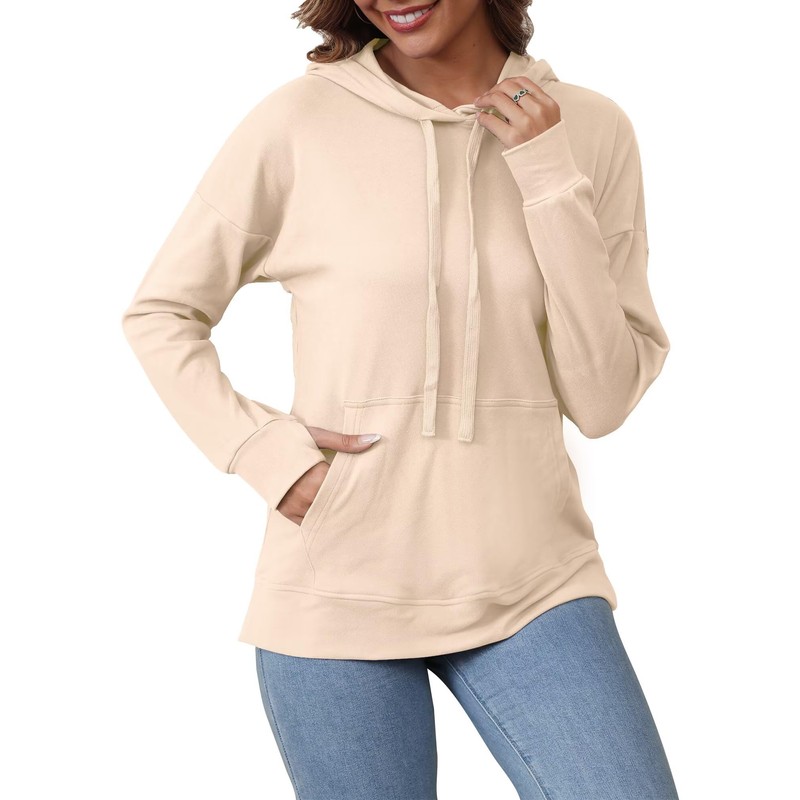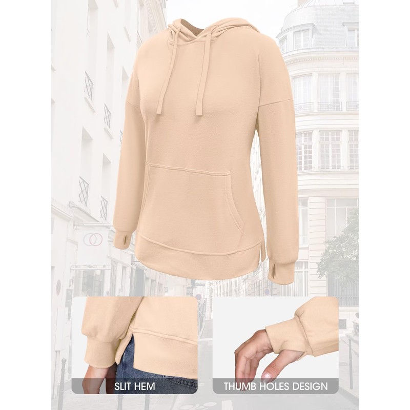 Women's Pullover Hooded Sweatshirt Loose Fit Soft Thumbhole Jacket Kangaroo Pockets Apricot M
