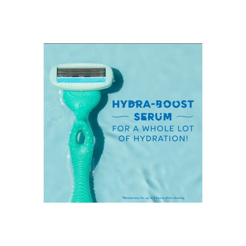 - Water-activated Hydra-Boost serum helps replenish skin's natural moisture for up to two hours after shaving, keeping legs nourished and smooth