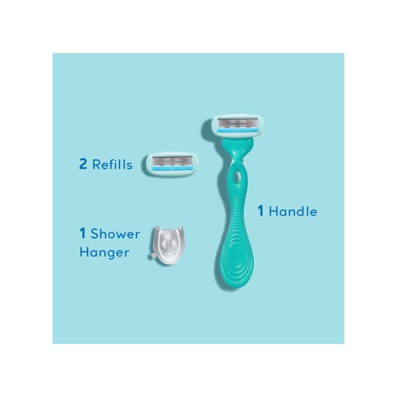- Razor pack includes one (1) razor handle and two (2) razor blade cartridges