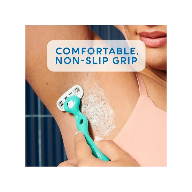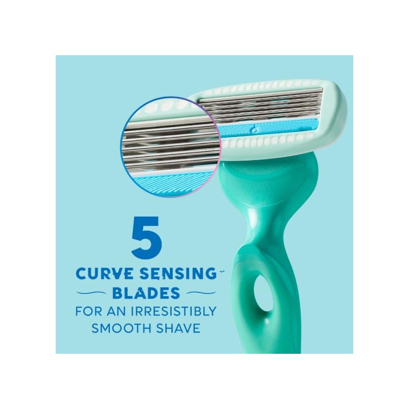 - Five curve-sensing blades with unique skin guards to smooth skin throughout every stroke