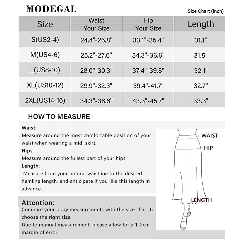 - How to choose the appropriate size: When choosing the size of this skirt, you mainly refer to your hip circuimference data. If your waist hip gap is too large, there may be a situation where the skirt does not fit your body as well.