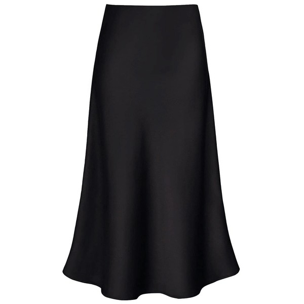 Women's Satin High Waist Hidden Elasticized Waistband Flared Casual A Line Midi Skirt, Black, XX-Large