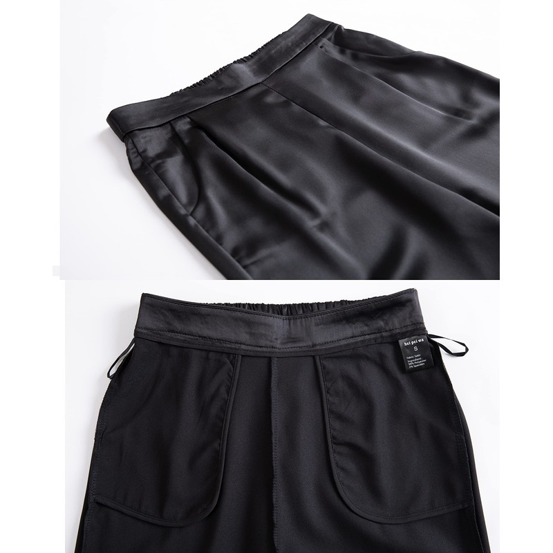 Women's Satin Silky Pants Dress Casual Pull on High Waist Pants with Pockets Drapeblack X-Large