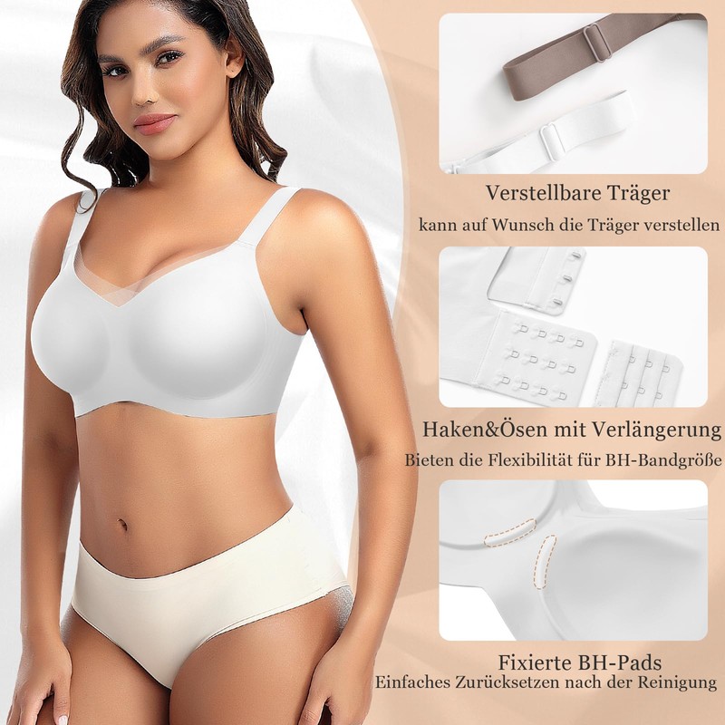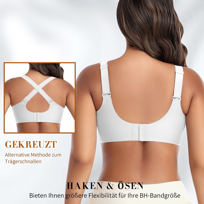 - Adjustable hook & eye closure and straps: you can not only adjust the position of the hooks in the eyelets to adjust the bra band size; but also adjust the strap clamping force to your own needs and ensures no cutting into the shoulder and armpits.