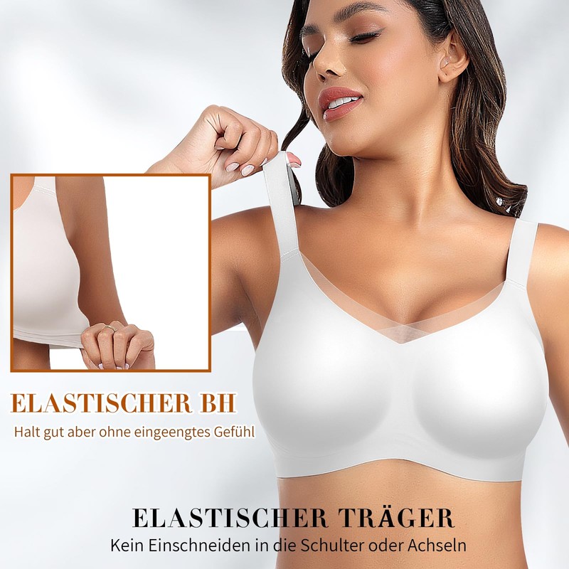 Women's Seamless Smooth Bra Without Underwire Lace Deep V-Neck Non-Wired Bra Soft Comfortable Bra with Additional Bra Extension Soft Bralette Bustier Bra T-Shirt, White
