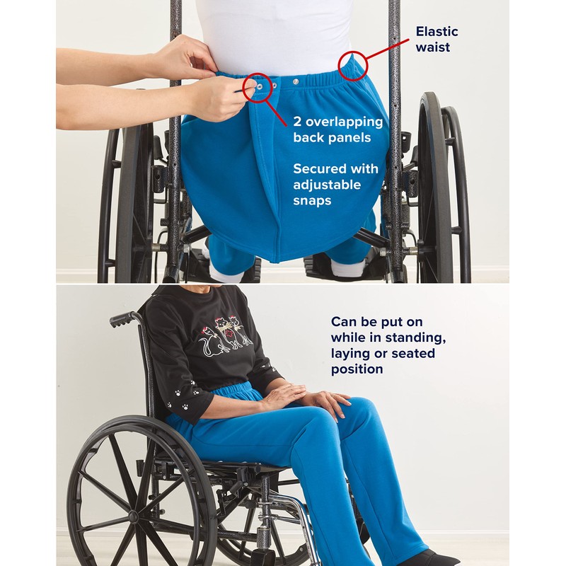 - CONFIDENCE & SECURITY: Two overlapping back panels offer total security and dignity, which is why this adaptive clothing is often called the premier senior elastic pants. Long-term care facilities love these open seat pants for women because they give those bound to a wheelchair or those with physical limitations confidence when dressing, using the restroom, or lounging.