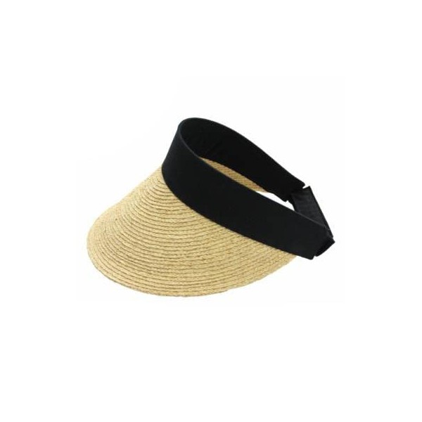 Women's Sewn Braid Velcro Back Visor, Cloth Band, Roll Up, Packable (Natural)
