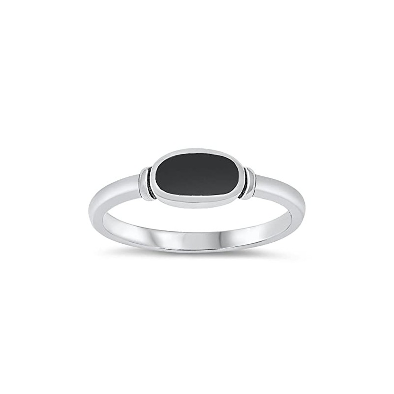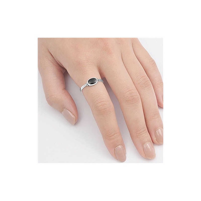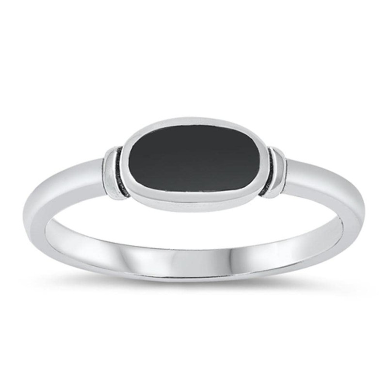 Women's Simple Simulated Black Onyx Unique Ring New .925 Sterling Silver Band Size 4