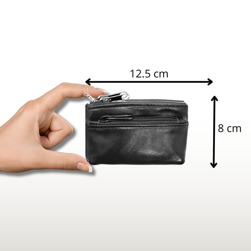 The small leather purse for women is a practical and stylish accessory for storing your coins, notes and cards safely. With RFID protection, your personal information is safe from unwanted readers. Compact and lightweight, this mini wallet fits easily into your pocket or purse. With 2 compartments and a key ring, it allows you to organize your belongings optimally. Available in various trendy colours, this genuine leather purse is a must-have for active and modern women. Approximate size: 12.5 x 8 x 2 cm.