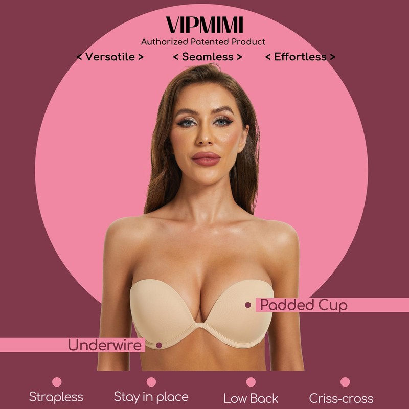 Women's Strapless Bra Push Up-Non Slip Invisible Underwire Low Back Multiway Support Padded Plunge Bra for Comfort Lift(Nude, 38A)