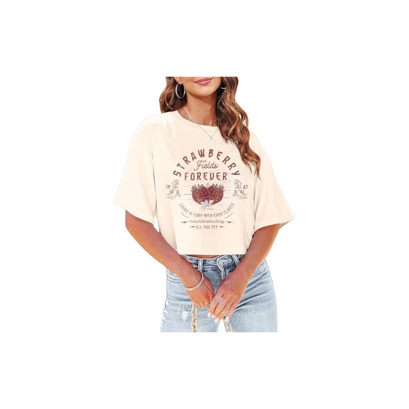 - Features:Women Crop Top Tshirt, Short Sleeve Cropped Top, Loose Fit Crop Tees,Women Rock Band Flowers Printed Pattern Shirt With Short Sleeve,Summer Fashion Rock T-Shirts , Round Neck , Funny Weekend Concert Graphic Tee Shirts