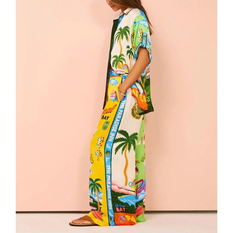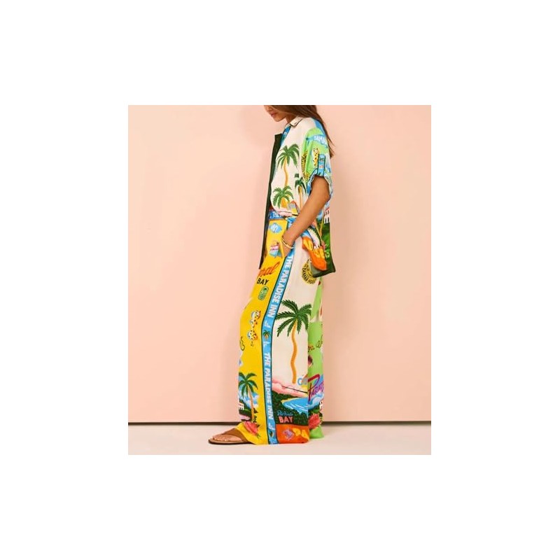 • Features: Button down short sleeved tops and elasticated waist pants.Drawstring pants, elastic waist, long pant, wide-leg pants, straight pants, two side pockets, loose design suitable for all body types.
