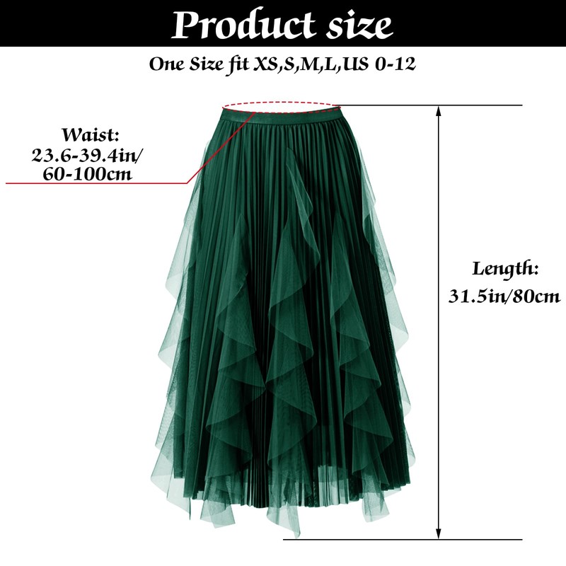 - 👗Special Design: High waist design, elastic waistline, irregular ruffles hemline, midi skirt, tutu skirt, flare A line style mask the women tulle skirt look more gentle simple and elegant, better visual effect.