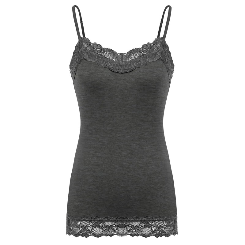 - A basic essential camisole for all women's closet.This sexy and comfortable long spaghetti strap cami with lace trim is perfect for layering or to wear by itself for any situation.