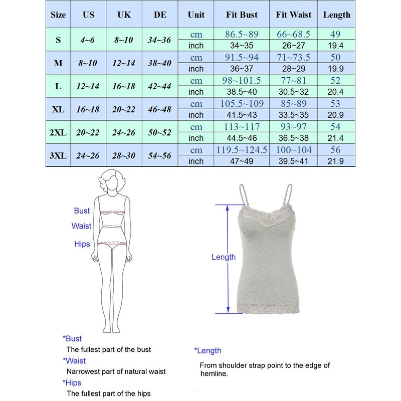 - The lace trim makes layering pretty but not too fancy, V-Neck, adjustable spaghetti straps, lightweight, soft and comfortable material.
