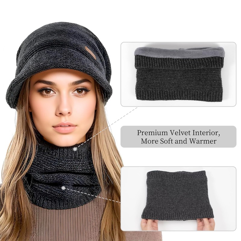 Women's Winter Hat with Scarf with Scarf Autumn A Combination Set Winter Beanie Women's Scarf and Hat Set with Visor Soft Inner Lining Lined, black