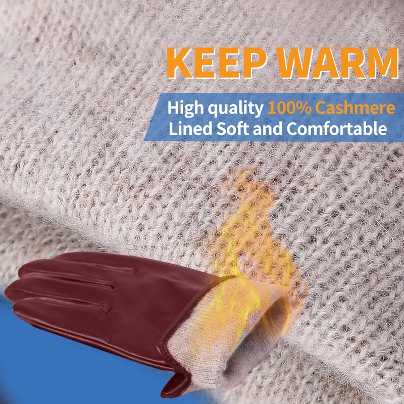 Women's Winter Leather Gloves Nappa Lambskin Touch Screen Gloves Warm Cashmere Lined,Burgundy,L