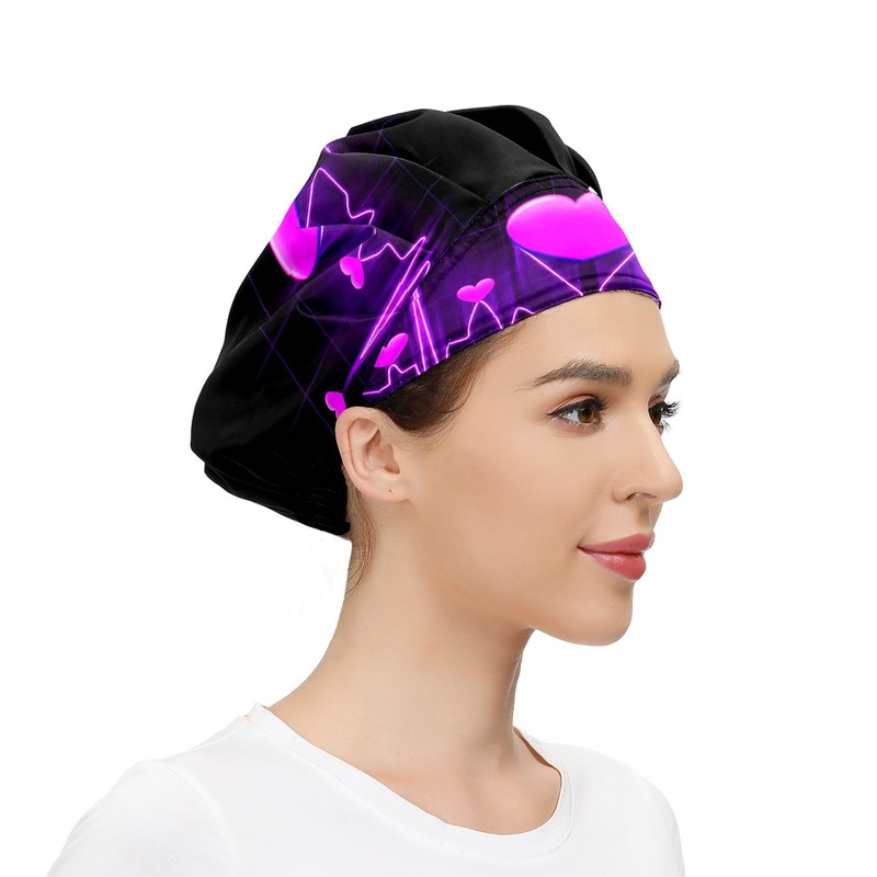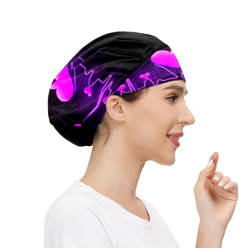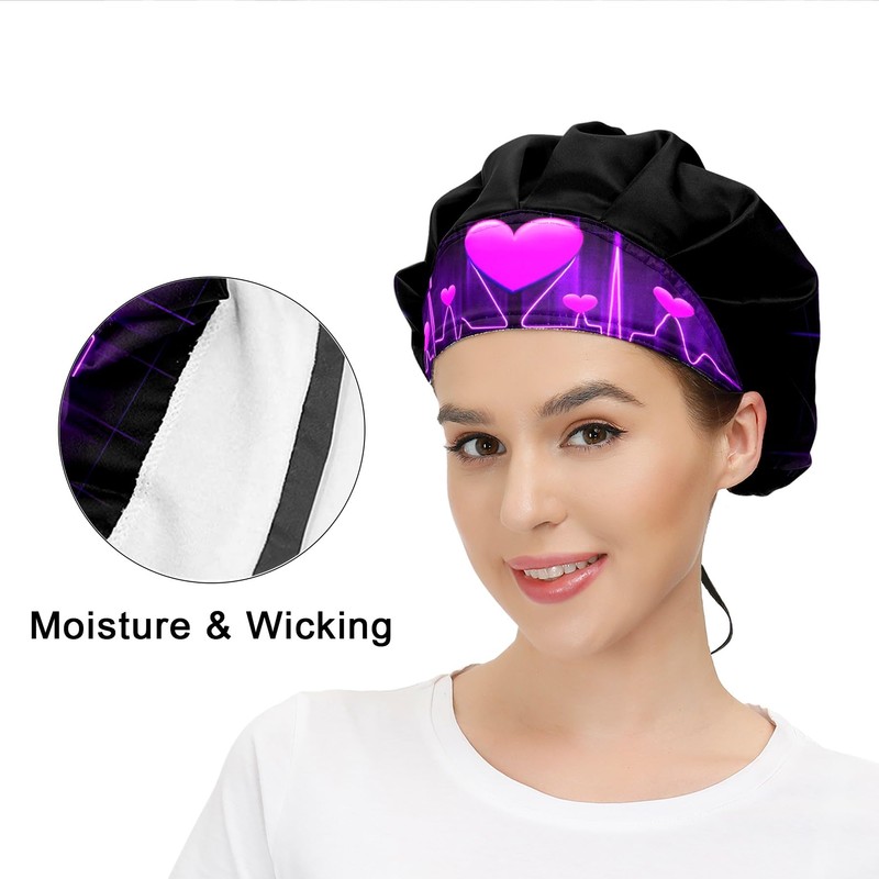 Women's Working Cap Pink Heart Waving Lines Adjustable Working Hats with Sweatband and Elastic Toggle Head Cover