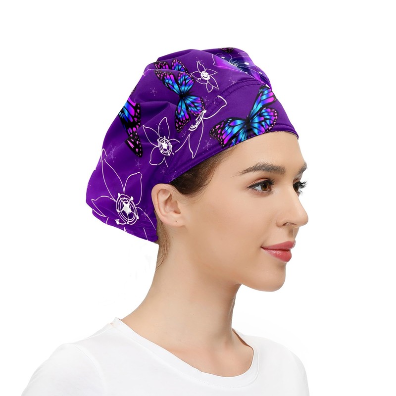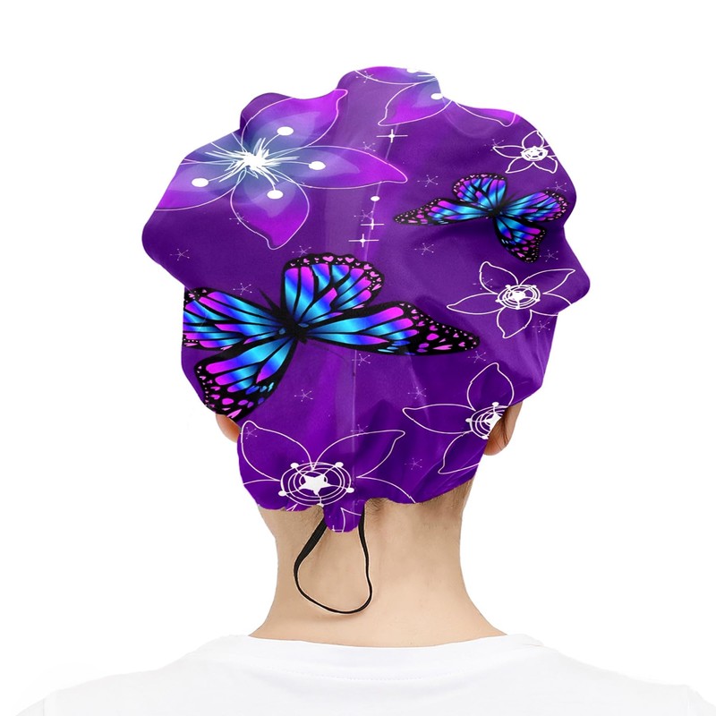 Women's Working Cap Purple Butterfly Adjustable Working Hats with Sweatband and Elastic Toggle Head Cover