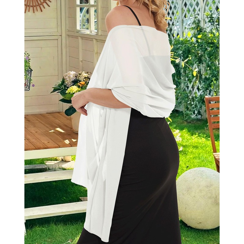 - Fabric: Shawls for women is 78.7*27.5 inch (200*70 cm) in size. The chiffon wedding shrug is soft and smooth, lightweight and flowing, breathable and comfortable, suitable for wearing in all seasons, especially spring and summer