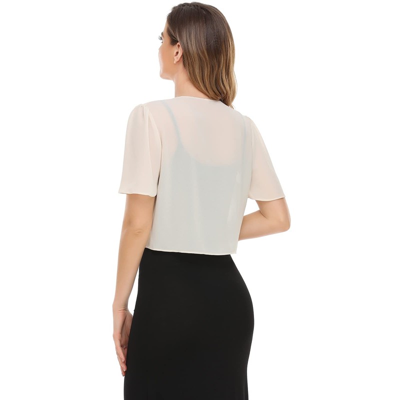 Women Shrug Soft Chiffon Open Front Sheer Short Sleeve Cardigans for Evening Dress(Champagne,XL)