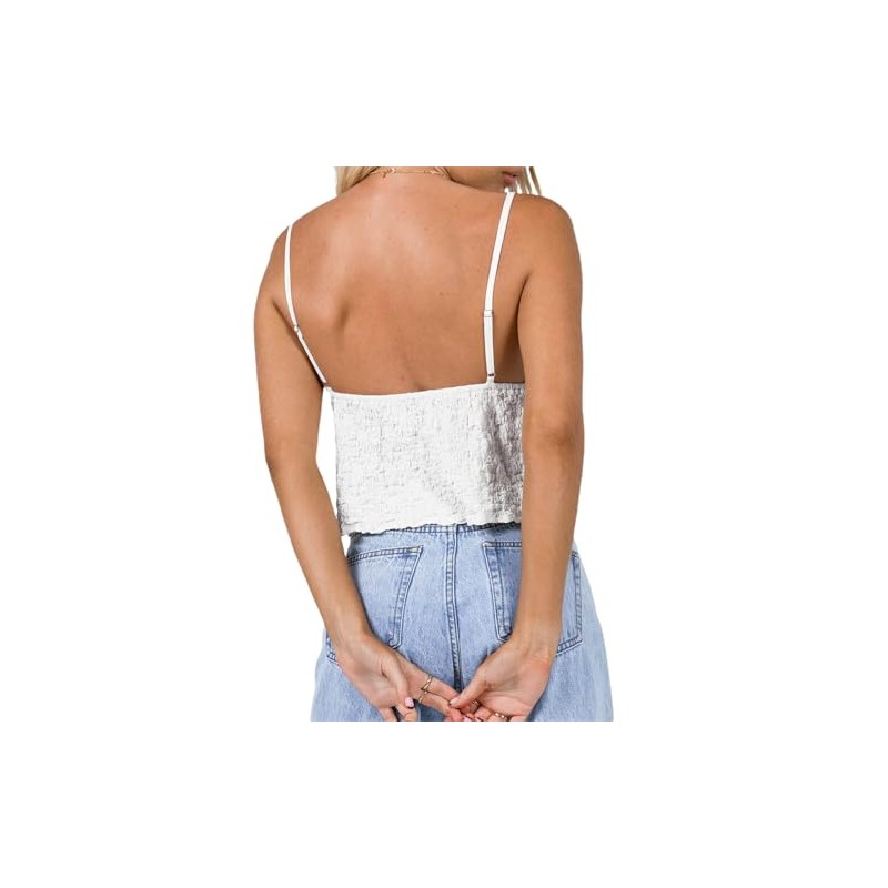 Women Tie Front Top Y2K Spaghetti Strap Ruffled Trim Flowy Summer Going Out Tops White S