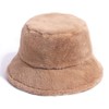 Women Winter Bucket Hat Faux Fur Plush Fisherman Cap Warm Soft Hat Khaki