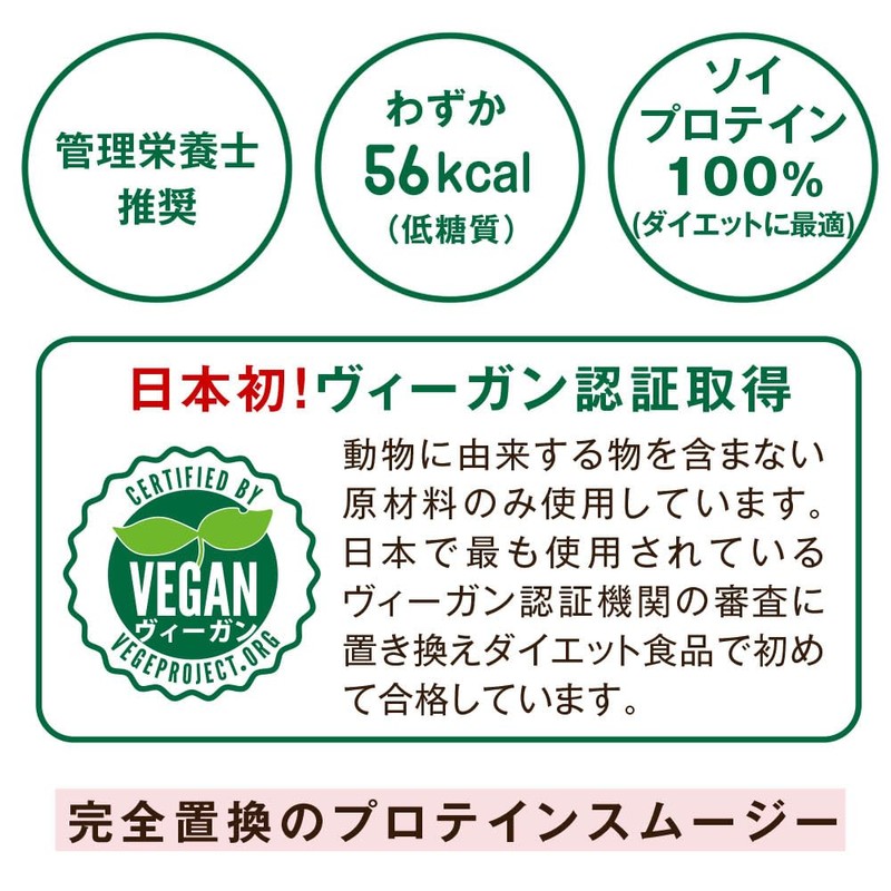 • 【ヴィーガン認証取得】置き換えダイエットで初めてのヴィーガン認定 ※ベジプロジェクトジャパンのヴィーガン認証