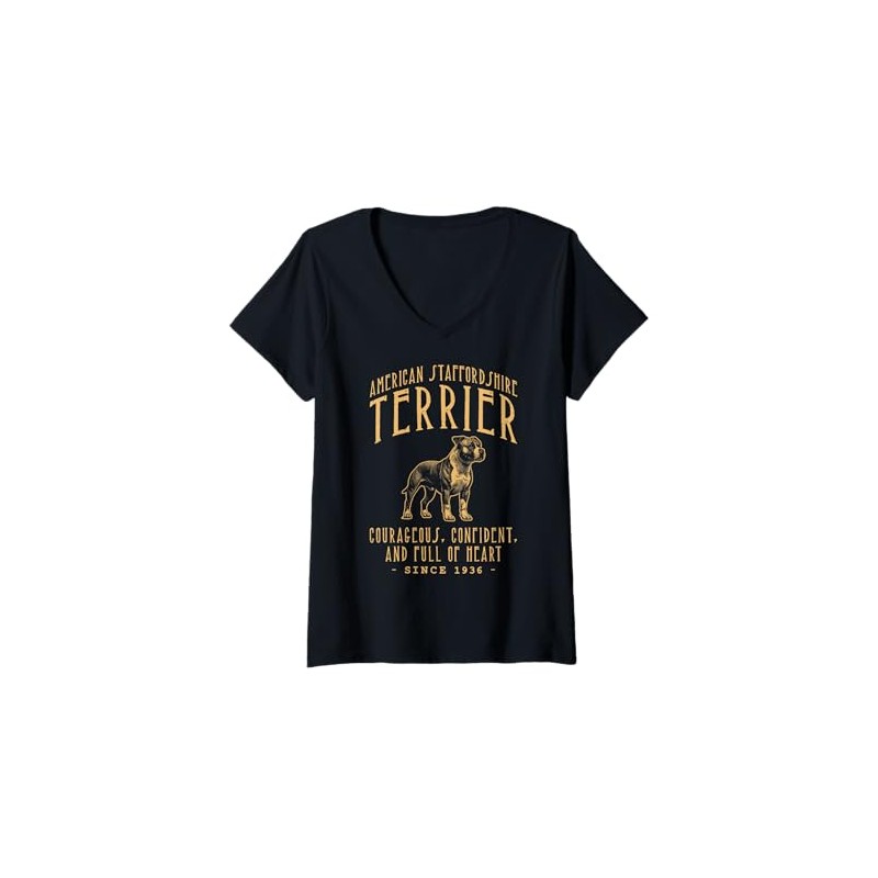 Womens AMERICAN STAFFORDSHIRE TERRIER STRONG AND LOYAL DOG V-Neck T-Shirt