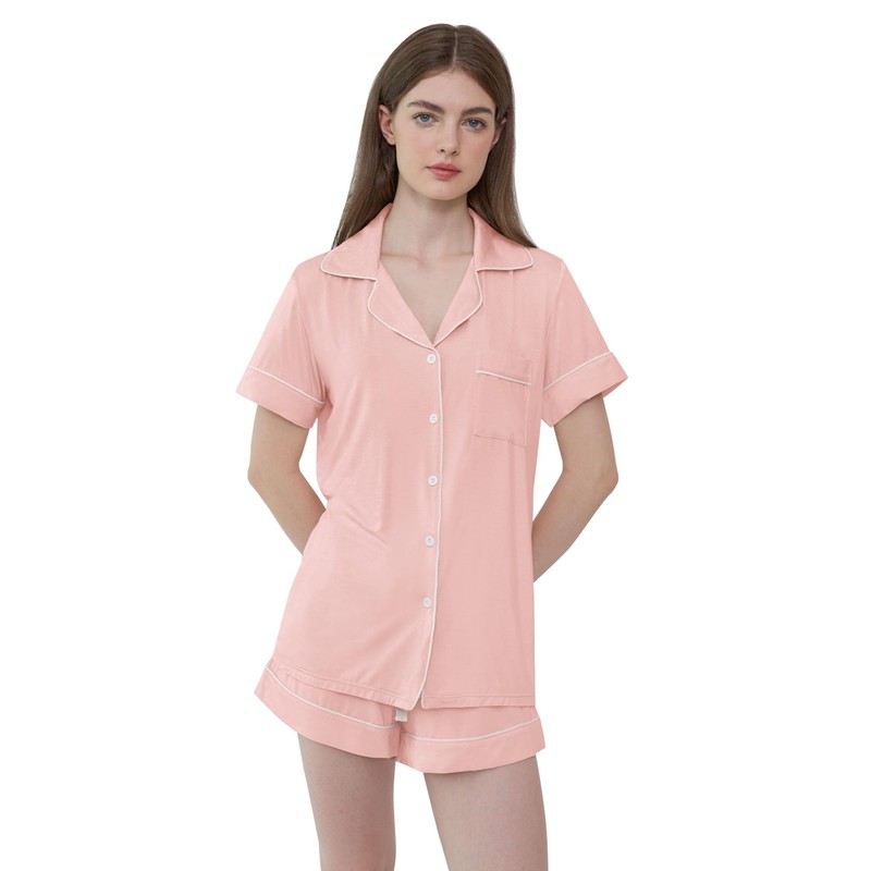 Womens Bamboo Viscose Pajamas Button Down Pajama Set Short Sleeve Pjs Set(Peach Coral,L)