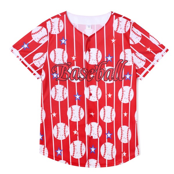 Womens Baseball Jersey Baseball Mom Shirts Cute Baseball Print Button Down Short Sleeve Top Game Day Outfits Red