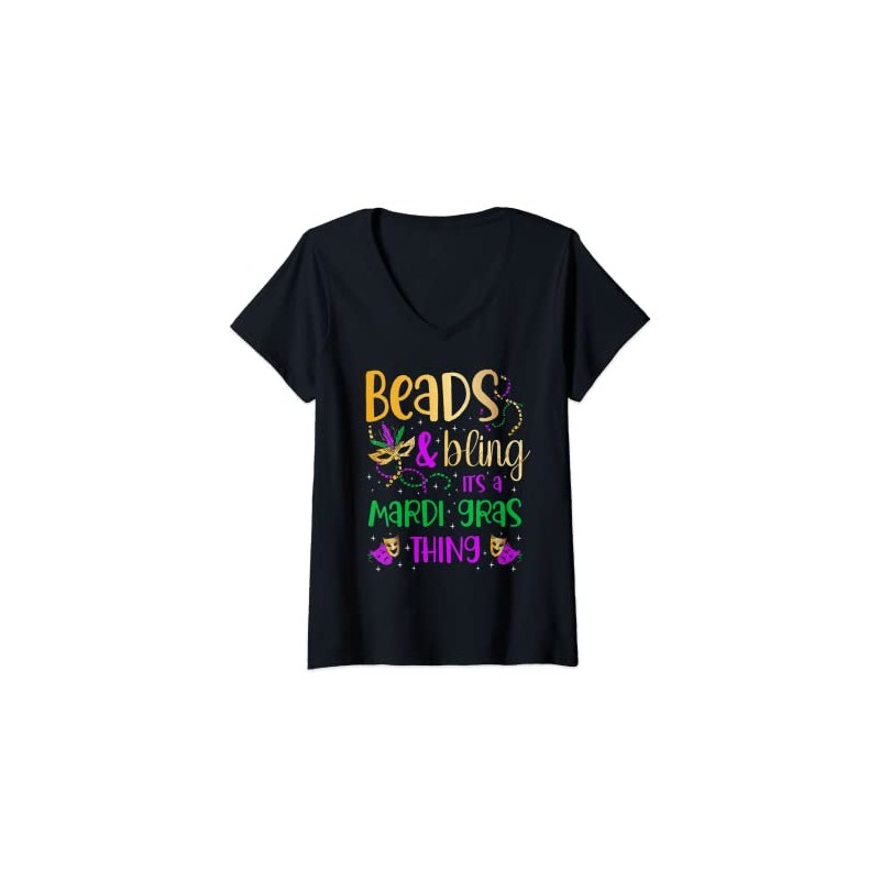 Womens Beads and bling it's a Mardi Gras thing Carnival Mardi Gras V-Neck T-Shirt