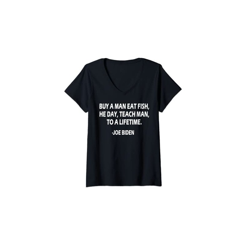 Womens Buy A Man Eat Fish He Day Teach Man To A Lifetime Joe Binden V-Neck T-Shirt