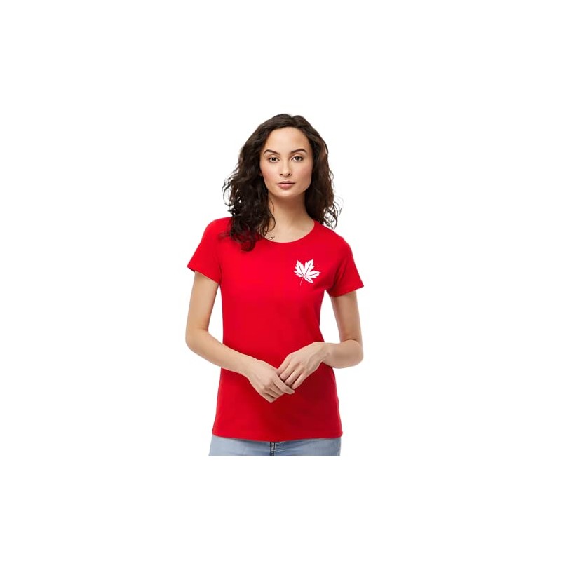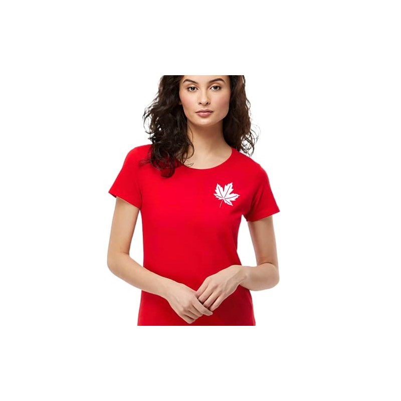 Womens Canada Maple Leaf T-Shirt - Handmade Premium Canada Shirt L2 (Deep Red, M)