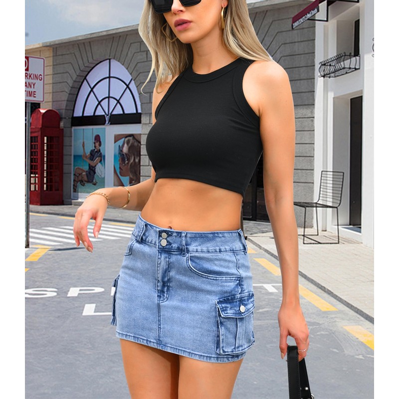 Womens Cargo Skirt Y2k Low Waist Button Bodycon Denim Mini Skirts with Flap Pockets