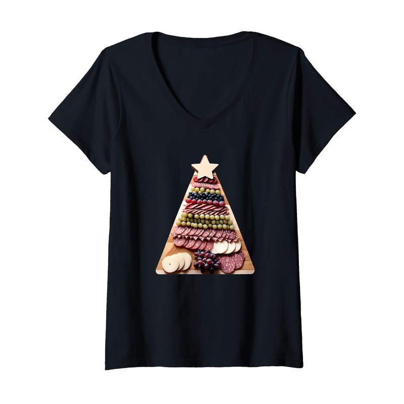 Womens Charcuterie Board Christmas Tree V-Neck T-Shirt
