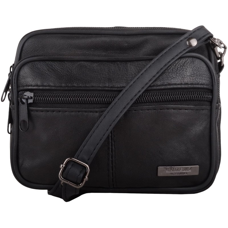 Womens Compact Soft Nappa Leather Cross Body Shoulder Bag with Belt Loop - Black
