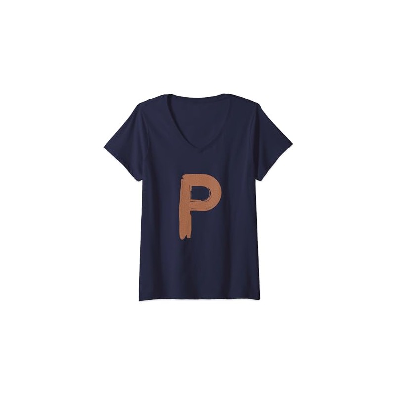 Womens Creative Bold Leather Letter P - Design - Alphabet - Marker V-Neck T-Shirt