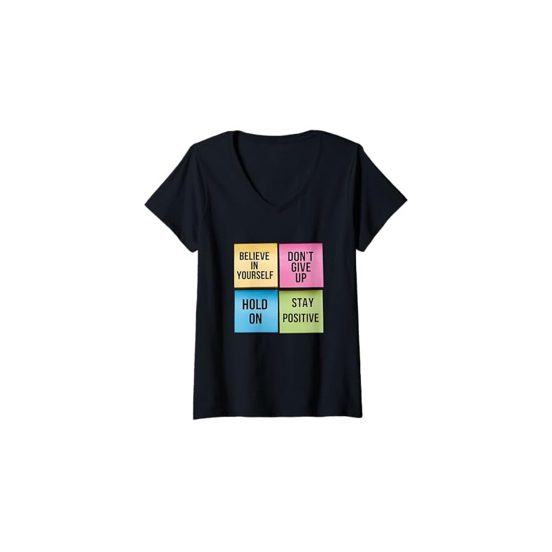 Womens Daily Motivation Inspirational Quotes Post Notes Print V-Neck T-Shirt