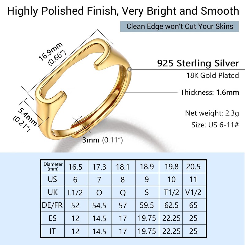 • ♦ Material ♦: Authentic 925 Sterling Silver with 22K Gold Plated. The Ring's Metal Content is at Least 92.5% Pure Silver. Nickel-free, Lead-free, Hypoallergenic, Non-irritating to Skins.