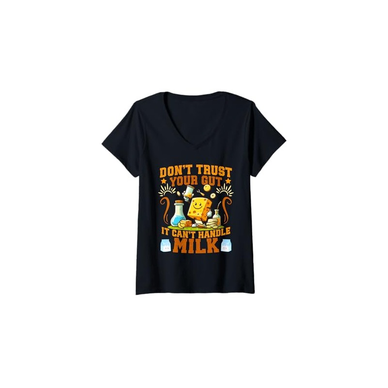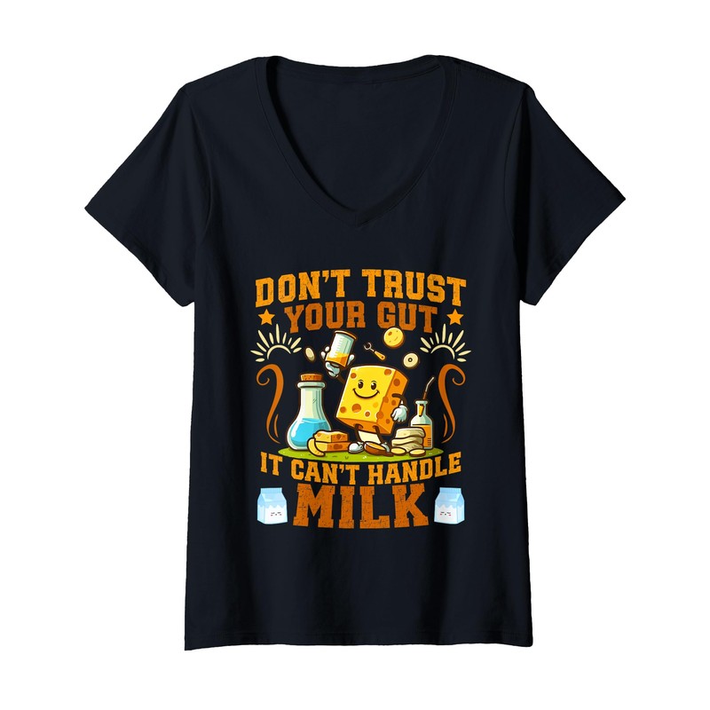 Womens Don't Trust Your Gut It Can't Handle Milk Lactose Intolerant V-Neck T-Shirt