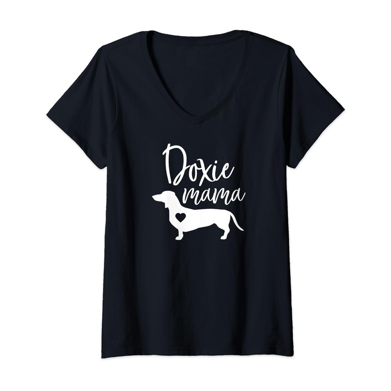 Womens Doxie Mama Dachshund Mama Funny Dog Mom Wiener Dog Doxie Mom V-Neck T-Shirt