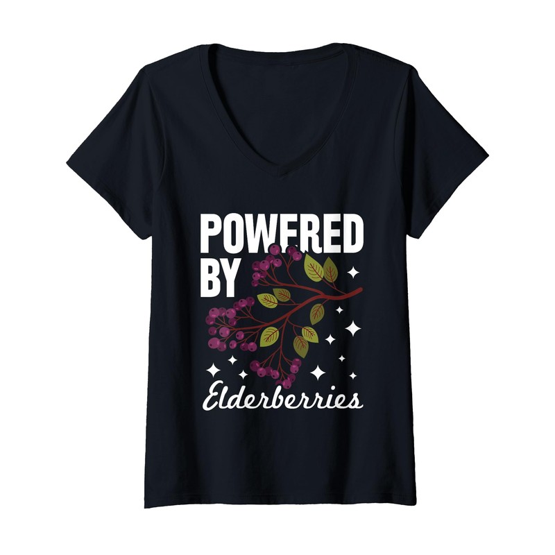Womens Elderberry Fan - powered by elderberries V-Neck T-Shirt