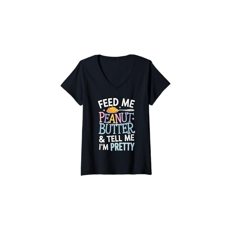 Womens Feed Me Peanut Butter and Tell Me I’m Pretty Funny Saying V-Neck T-Shirt