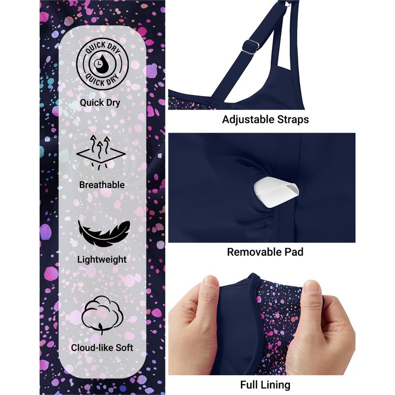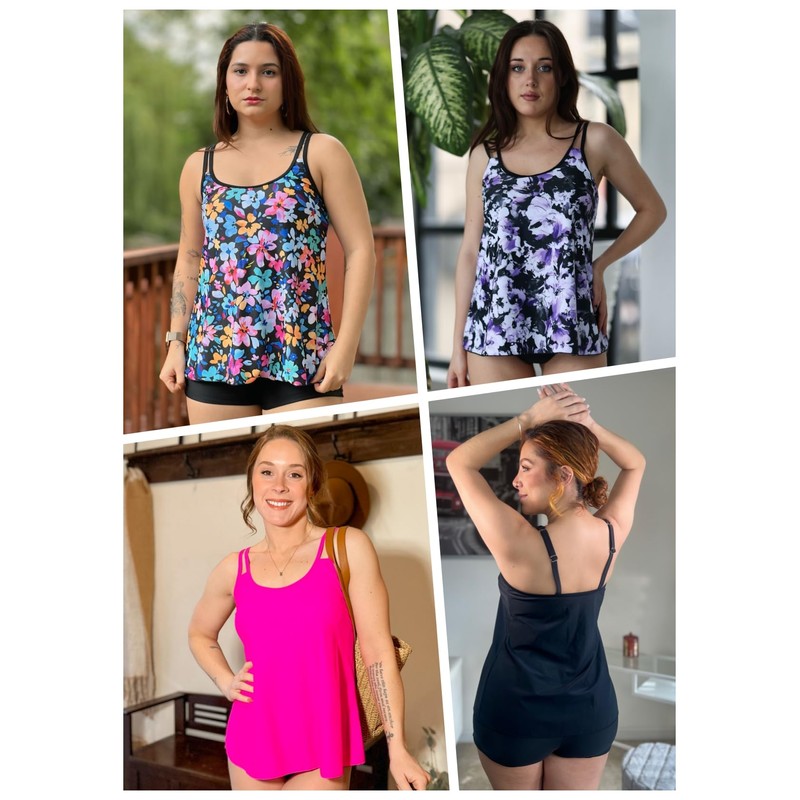 • Tankini Top Only: Equipped with adjustable shoulder straps, this tankini top offers a customizable fit and reliable support. Removable pads allow for flexible shaping, letting you personalize your level of comfort and style.