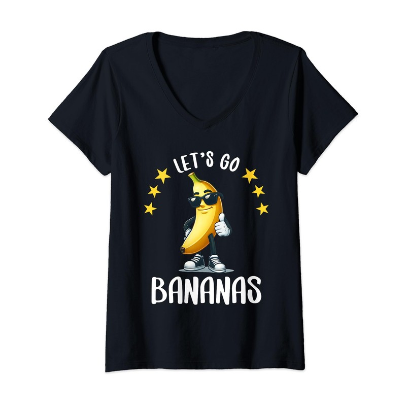 Womens Funny Bananas Shirt Cute Banana Gifts Funny Lets go Bananas V-Neck T-Shirt
