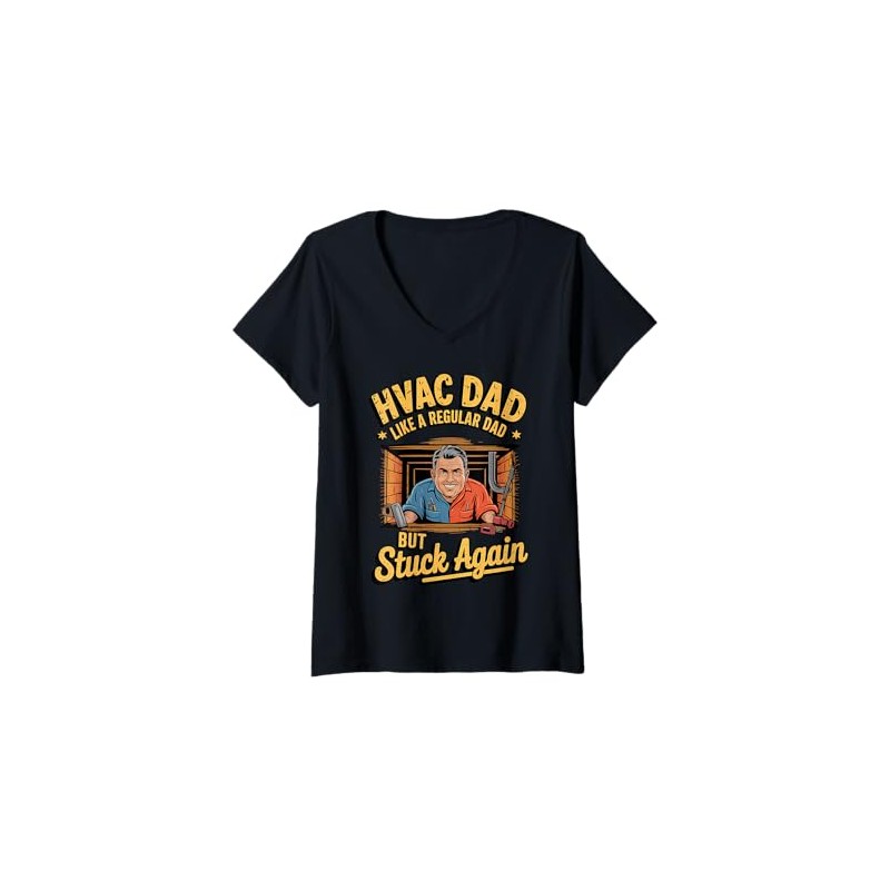 Womens Funny HVAC Dad Stuck Again Toolbox Repair Crawl Space V-Neck T-Shirt