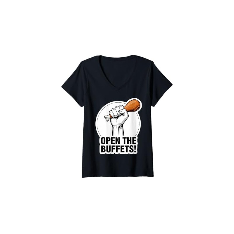 Womens Funny Open The Buffets Cruise Ship Raised Fist Food Lover V-Neck T-Shirt