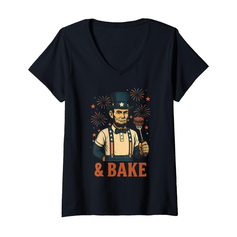 Womens Funny Shake And Bake 4th of July Couple Matching V-Neck T-Shirt